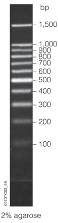 The 100bp DNA Ladder has eleven fragments that range in size from 100bp