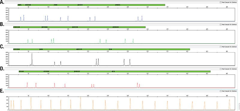 The PowerPlex® ESX 17 Fast System amplifies the loci recommended by the European Network of Forensic Science Institutes (ENFSI) and European DNA Profiling Group (EDNAP) as mini-STRs (<125bp; D2S441, D10S1248 and D22S1045) or midi-STRs (125–185bp; D1S1656 and D12S391).